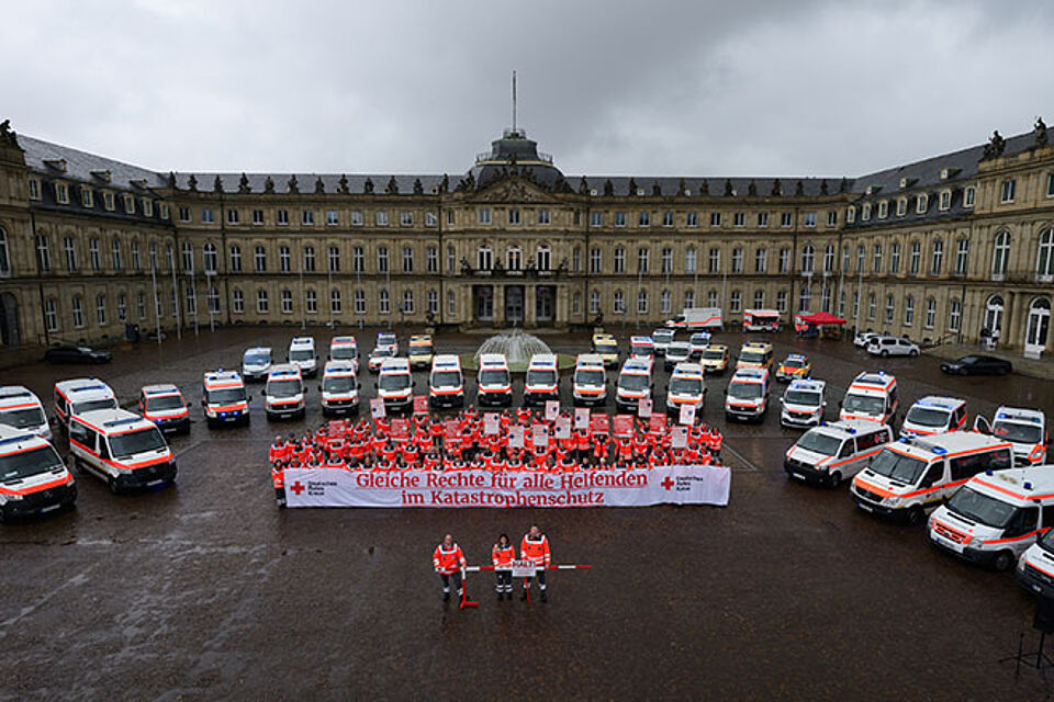 Das DRK hatte seinen Forderungen mit einer Aktion in Stuttgart Nachdruck verliehen. Einheiten aus dem ganzen Land haben dem Innenausschuss des Landtags im Schlosshof ein Grundlagenpapier zur Zukunft des Katastrophenschutzes übergeben.