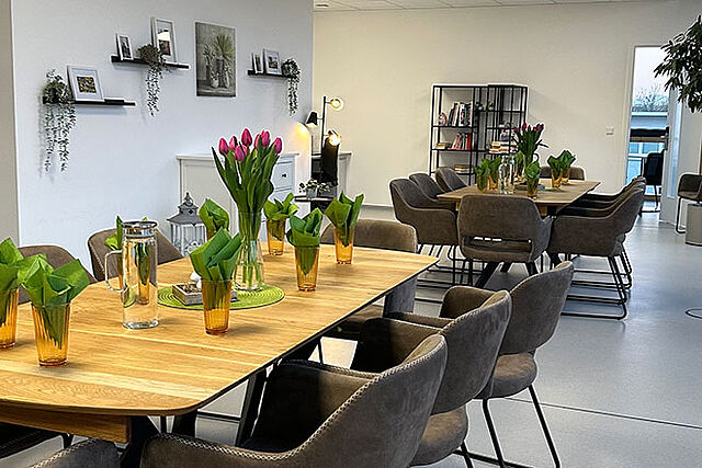 Auf Wunsch holt Sie ein Fahrdienst morgens von zu Hause ab. Nach einem gemeinsamen Frühstück gestalten abwechslungsreiche Aktivitäten den Vormittag. Nach dem Mittagessen bleibt z.B. Zeit für Ruhe, Gespräche oder einen Spaziergang, bevor am Nachmittag eine kleine Kaffeerunde den Tag abrundet – und der Fahrdienst Sie wieder nach Hause bringt.